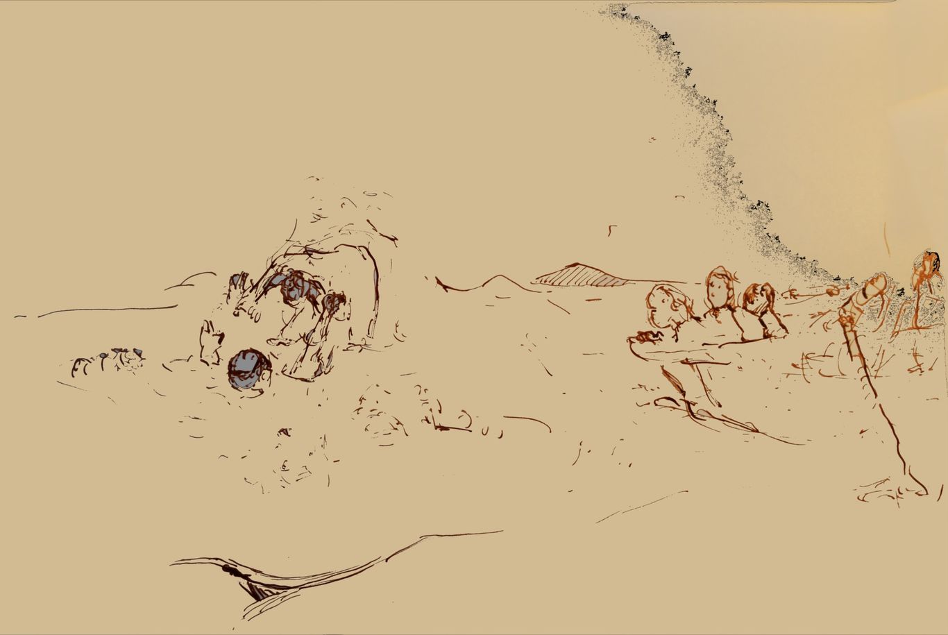 aus dem Wasser gezogen. 2022. Tuschezeichnung am Computer nachgezeichnet. 20 x 15cm.