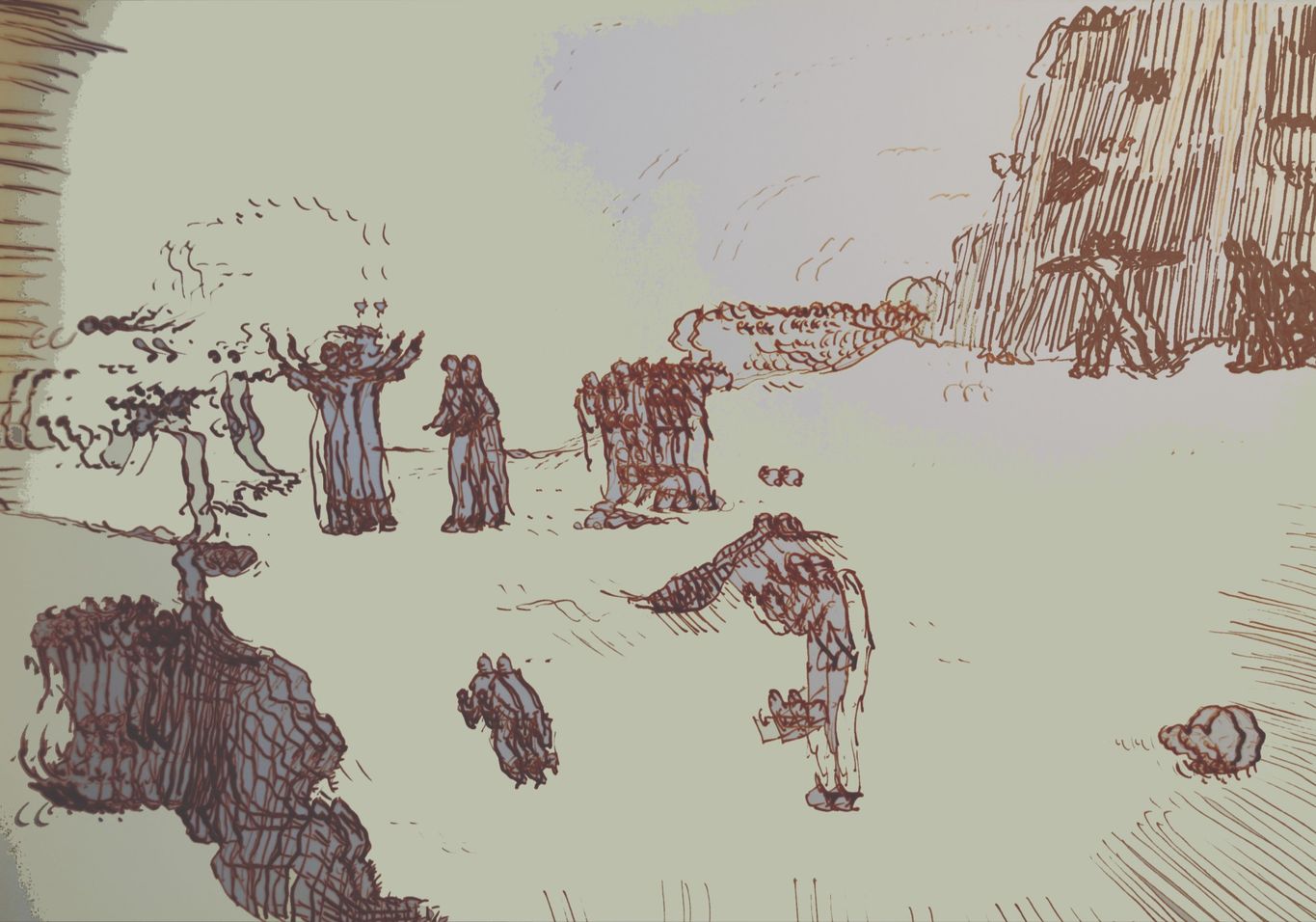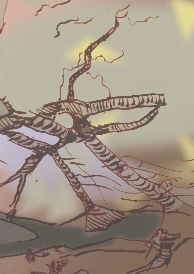 Aufgang wandelndes Licht. 2022. Tuschezeichnung am Computer bearbeitet. 35 x 20cm.