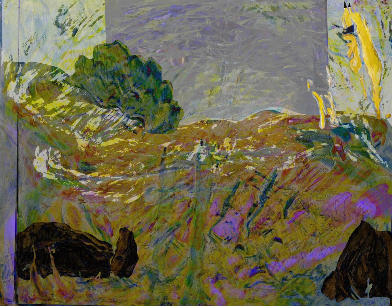 Landschaft. 2022. Malerei am Computer collagiert. 70 x 80cm.