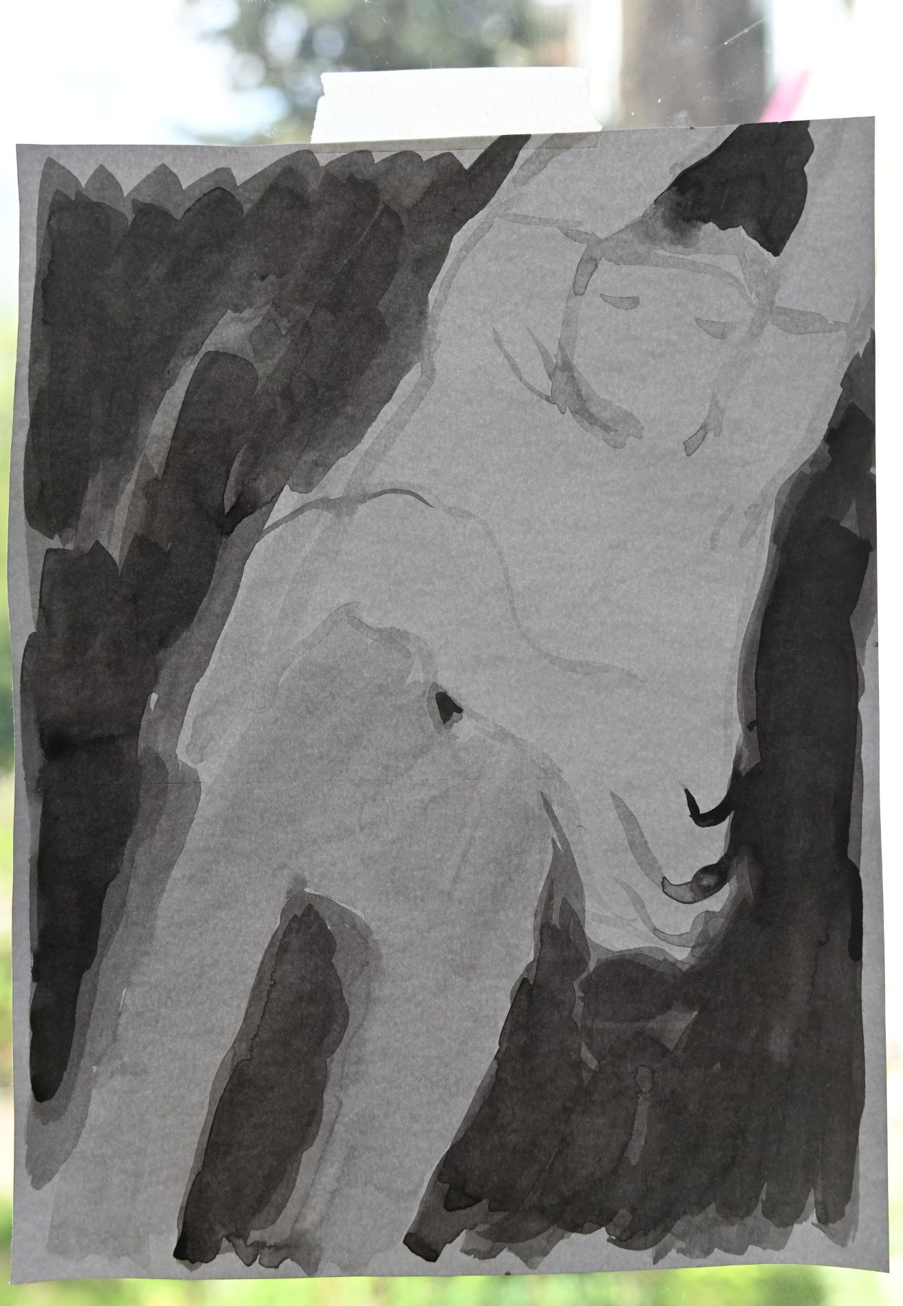 Sprung. work in progress. Tusche auf Leinwand. 140 x 60cm.