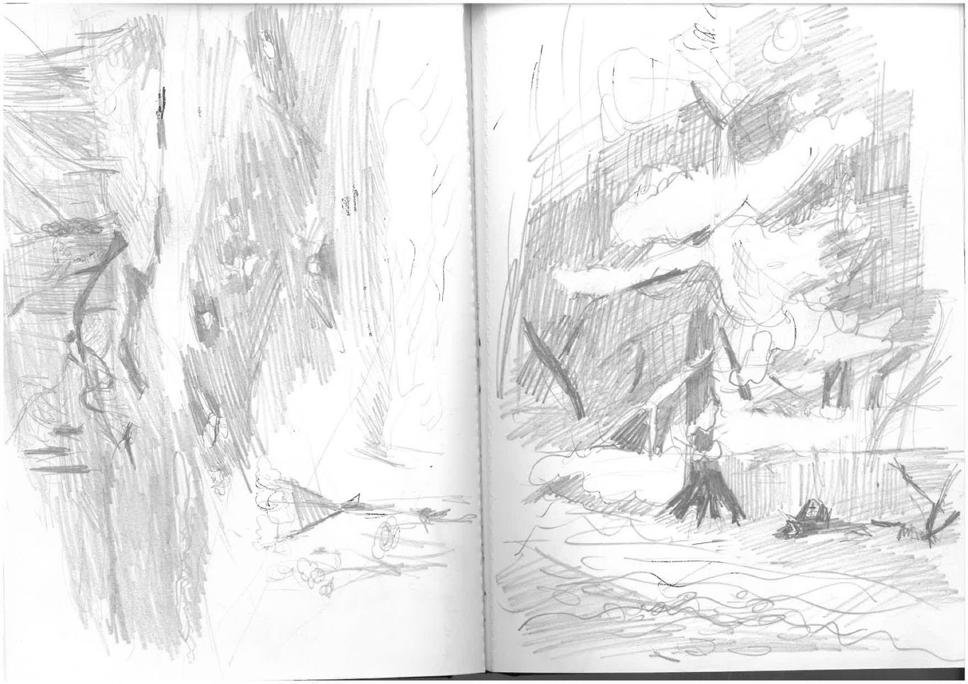 Landschaft im Tervurener Park. 2021. Bleistift auf Papier. jeweils 20 x 15cm.